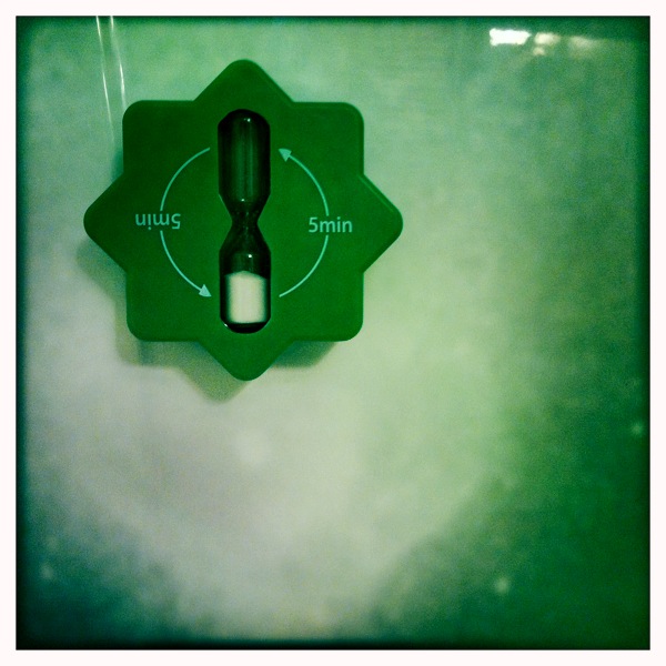 I recently tried the approach of making it a ten minute shower timer and I just rotate the hourglass halfway through. The problem with this solution is that the technology on this thing is caveman equivalent and so you have to watch it like a hawk. I spend more time watching the sand fall than I do actually washing myself; it’s quite distracting because if I turn away there is no indicator telling me it’s done and I always miss it. At times when I’m rushing I finish in around eight minutes; at that point, because I’m crazy, I don’t want to get out before the timer runs out because as I see it, the timer is telling me I have two more minutes, so I should use them.