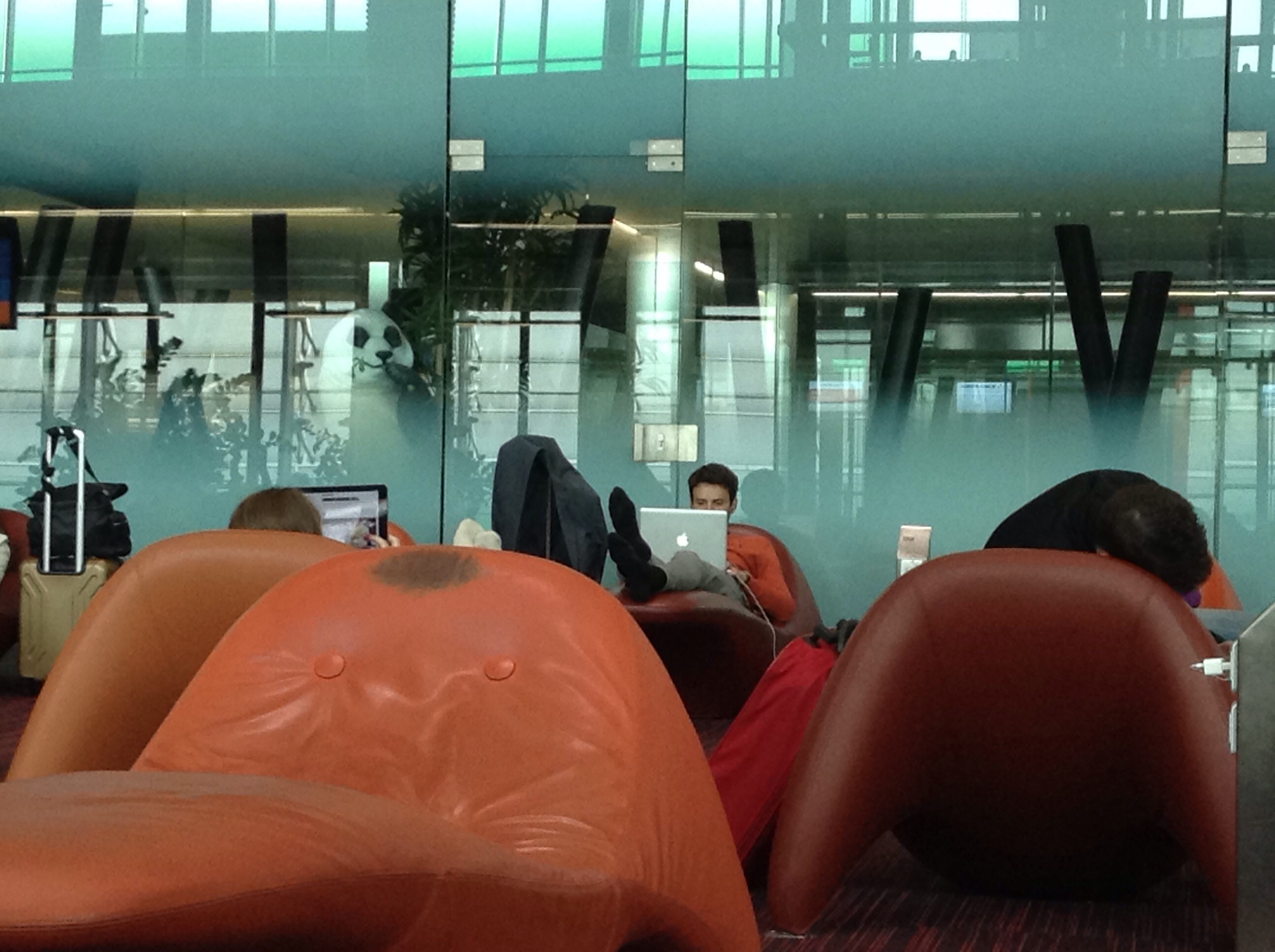 Update: I have landed safely in Paris and had my first experience with their fancy toilets (that’s right France, you just got to know me a little better). I am enjoying some wacky lounge area with bed-like recliners, foreign outlets and for some reason a weird panda. I don’t think there are pandas in France so I’m confused about the decor theme.