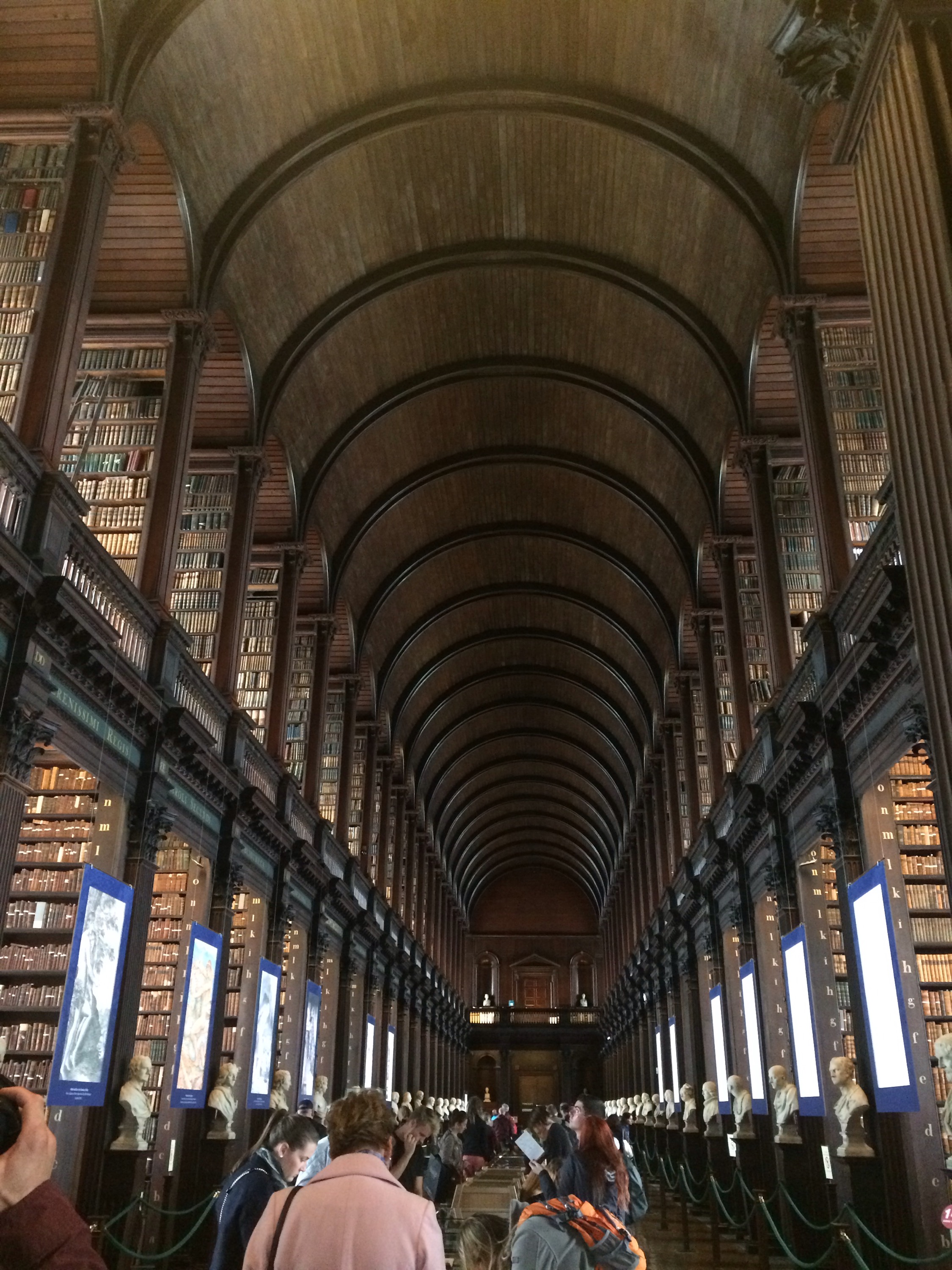 The next day I toured Trinity College and saw the Book of Kells and The Long Room, which in simple terms are a really old book and a really old library with more really old books. This description should not be taken as me selling the experience short, as I spent a long while sitting alone staring up at the ceiling of the Long Room just soaking in the beauty and history of it all. I find myself so like my mother at times, on the verge of tears whenever I see something historically important or architecturally beautiful. It is as though the magnitude of its importance threatens to break and overwhelm me. People rushing around me taking selfies and only winessing the Long Room through a camera lens eventually faded into the background as I allowed myself to meditate a little and appreciate how far I had traveled and how much it has already affected me.
